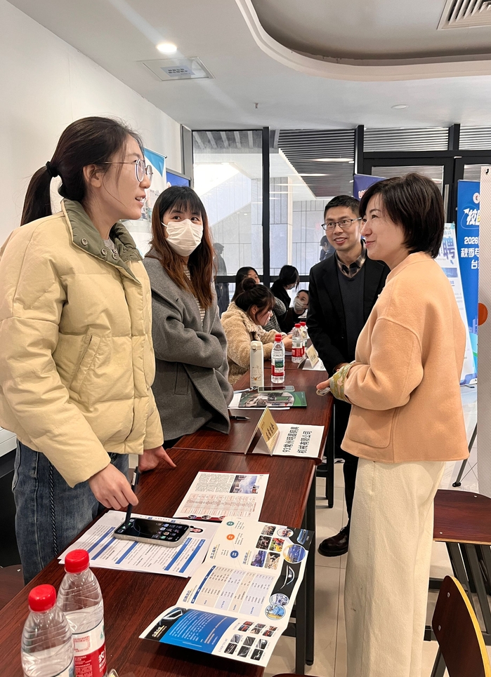 为助力2026届港澳台毕业生在常就业,11月26日,我校港澳台办公室联合常州市台办举办“2026届毕业生秋季招聘会——台资企业专场”。光宝科技、常州永和精细化学等多家在常重点台企携百余岗位进校揽才,岗位涵盖化工、智能制造、电子信息、新能源、供应链管理等多领域,吸引众多学生应聘。