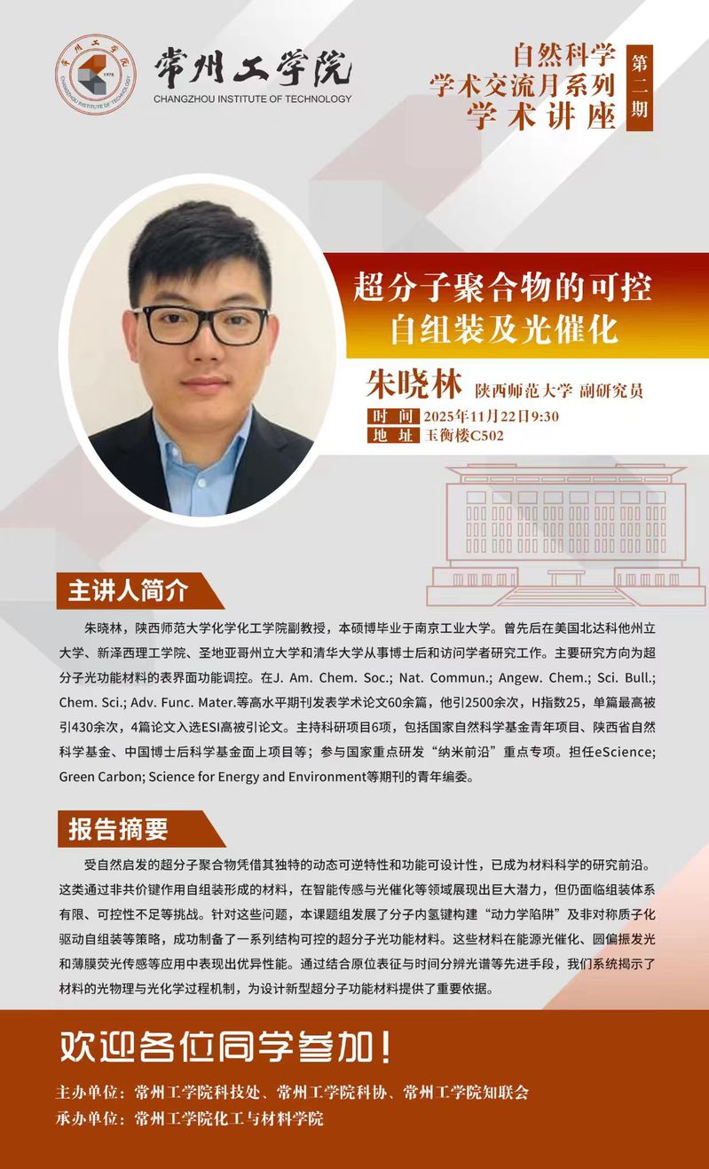 11月22日|超分子聚合物的可控自组装及光催化