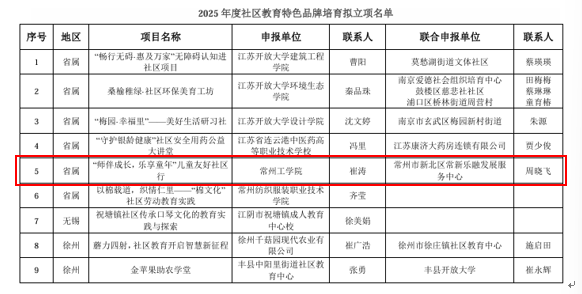 近日,江苏开放大学正式公布2025年社区教育特色品牌培育项目评审结果,我校崔涛老师申报的项目成功通过评审,获批立项。