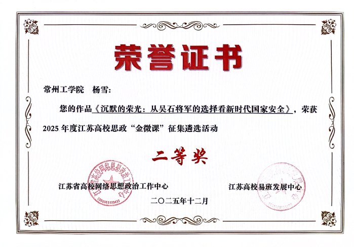 近日,2025年度江苏高校思政“金微课”征集遴选活动结果揭晓,我校电气信息工程学院杨雪老师的微课作品《沉默的荣光:从吴石将军的选择看新时代国家安全》荣获二等奖。