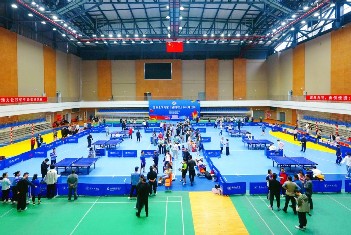 比赛现场气氛热烈,运动员们斗志昂扬、身姿矫健,直拍、横拍、发球、接球、推挡、扣杀、旋转等技术运用娴熟,小小乒乓球在球桌上来回飞跃,激烈对决引得在场师生凝神观看。