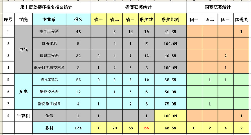此前,电气信息工程学院、光电工程学院和计算机工程学院共134名同学参加江苏省赛区比赛,荣获一等奖7名,二等奖20名,三等奖38名。