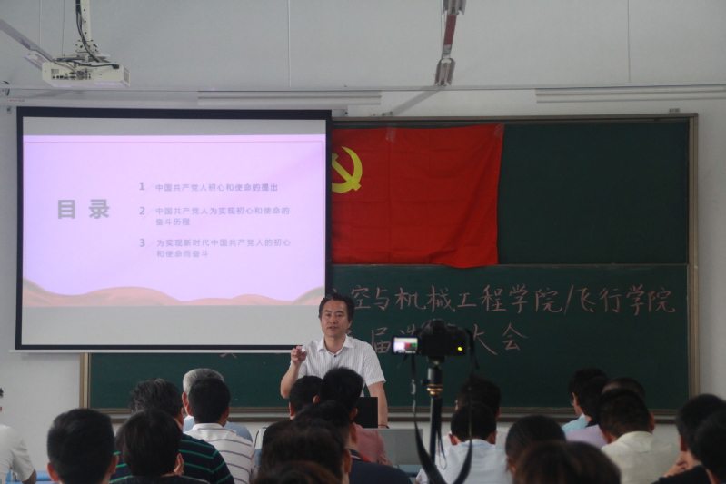 6月25日下午,校长汤正华以《深入学习十九大精神——把握新时代中国共产党人的初心和使命》为题,为航空与机械工程学院/飞行学院所有党员上了一堂养分十足的微党课。