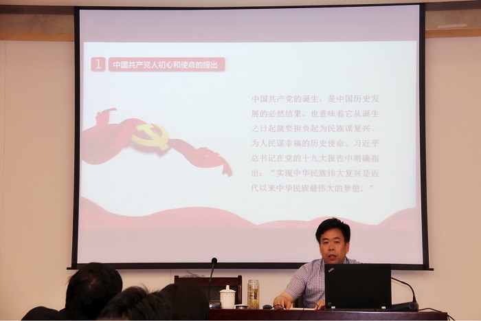 朱锡芳从中国共产党人初心和使命的提出、中国共产党人为实现初心和使命的奋斗历程、为实现新时代中国共产党人的初心和使命而奋斗三个方面娓娓道来,阐明中国共产党人的初心和使命就是为中国人民谋幸福、为中华民族谋复兴,强调“初心和使命”是中国共产党人不断前进的根本动力,要实现中华民族的伟大复兴、实现伟大梦想,就必须进行伟大斗争。