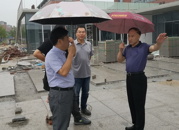 8月28日,迎着绵绵细雨,校党委书记曹雨平、副校长朱锡芳来到暑期改造的教工餐厅、学生餐厅和正在建设中的校产教融合发展工程设计研发中心暨国际交流中心施工现场,查看食堂改造完成情况、开餐准备工作以及工程进展情况。