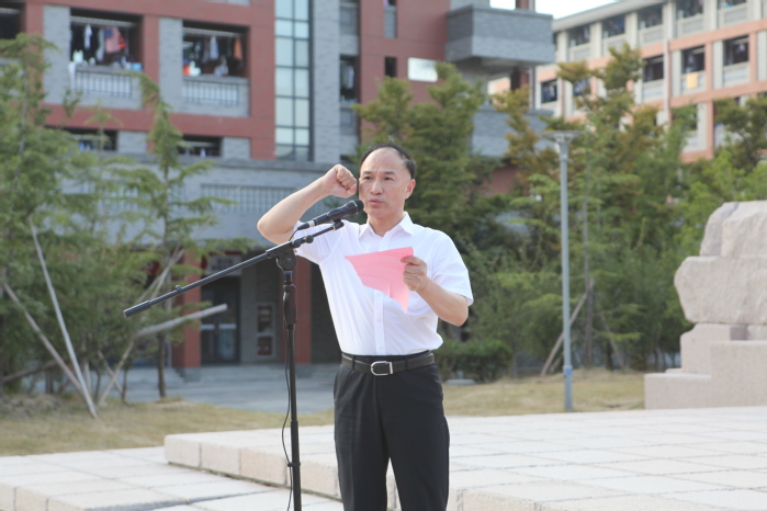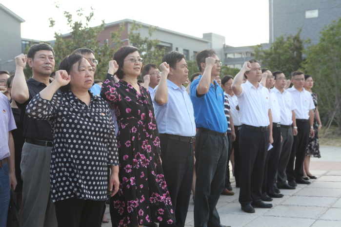 “我志愿加入中国共产党,拥护党的纲领,遵守党的章程,履行党员义务……随时准备为党和人民牺牲一切,永不叛党。”在校党委书记曹雨平领誓下,全体领导干部神情庄重、精神饱满,面向鲜红的党旗,举起右手,庄严宣誓,强劲有力的声音响彻广场上空。