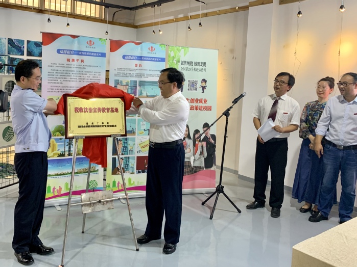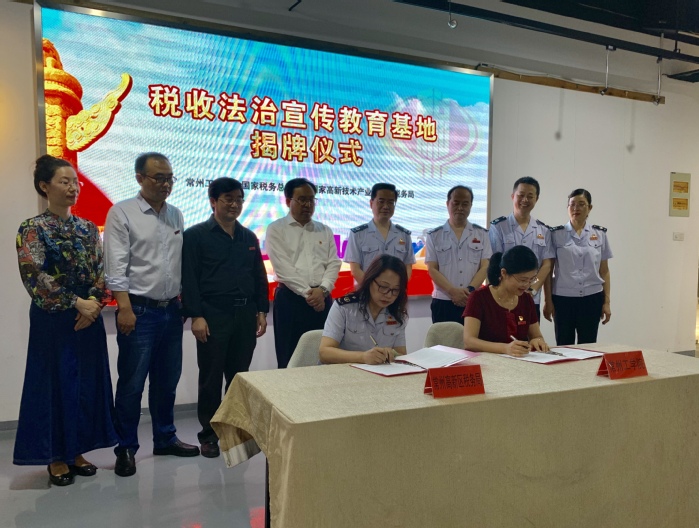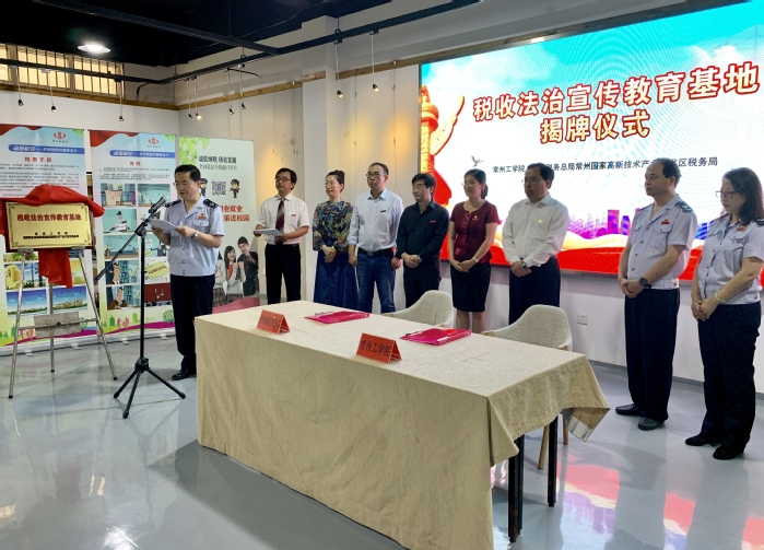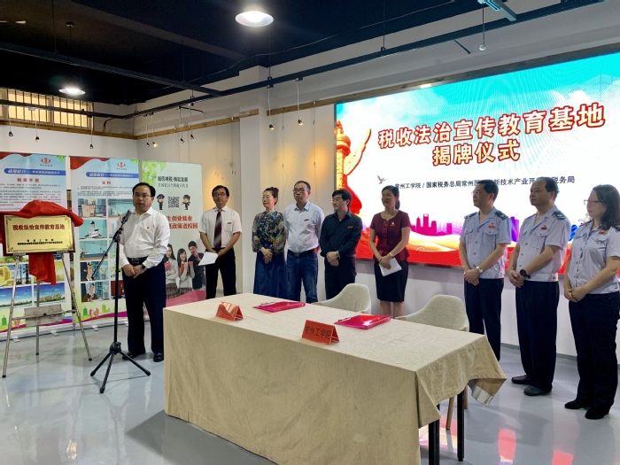 9月27日上午,由我校和国家税务总局常州国家高新技术产业开发区税务局共建的常州市首家高校税收法治宣传教育基地在我校巫山路校区正式成立。校党委常委、副校长王传金与常州市税务局党委委员、副局长韩威共同为税收法治宣传教育基地揭牌。
