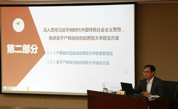 根据我校深入贯彻习近平新时代中国特色社会主义思想,推进基于产教融合的应用型大学的建设方案,朱海山介绍了产教融合是建设应用型大学的重要途径,基于产教融合的应用型大学建设方案等内容。