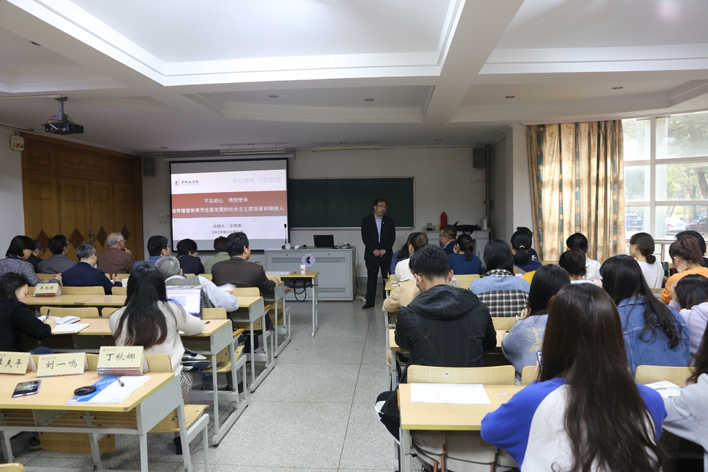 11月1日,副校长王传金以《不忘初心、勇担使命,培养德智体美劳全面发展的社会主义建设者和接班人》为题讲授主题教育专题党课。外国语学院、师范学院全体师生党员、离退休党工委在职领导和离退休各党支部书记、委员参加。外国语学院党委书记刘一鸣主持。