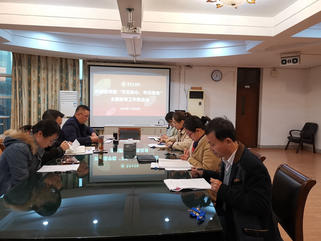 11月25日,外国语学院党委召开党委委员和党支部书记会议,专题部署“不忘初心、牢记使命”主题教育专题组织生活会和民主评议党员工作。