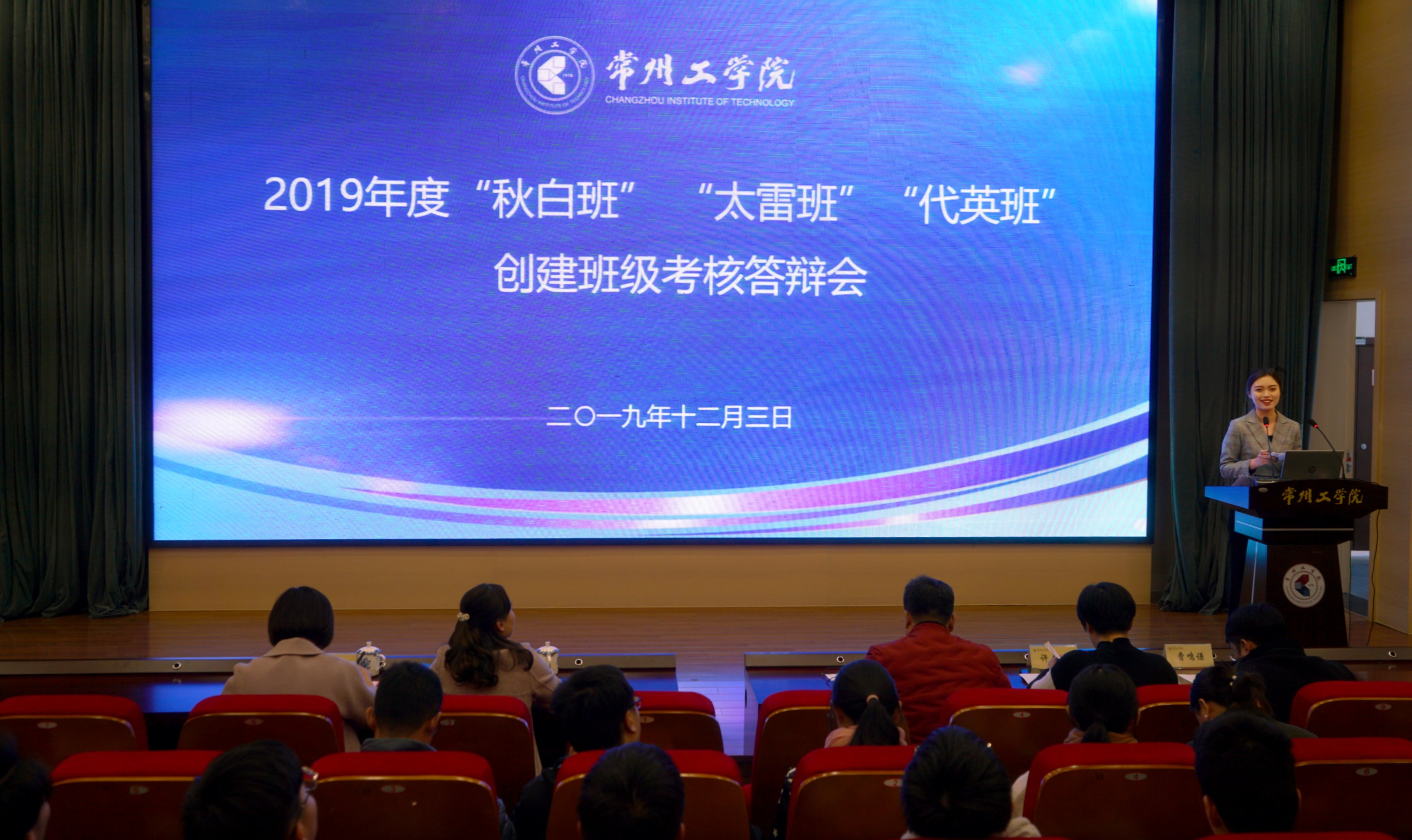 12月3日下午,学校举行2019年度“秋白班”“太雷班”“代英班”创建班级考核答辩会。马克思主义学院党总支书记、院长熊焱生、学生工作部(处)处长吕莹璐、校团委书记许文婷、党委宣传部副部长曹鸣谦、学生工作部(处)副处长糜泽敏担任评委。各二级学院党委副书记、学工办主任、创建班级负责人和学生代表共同观摩答辩。