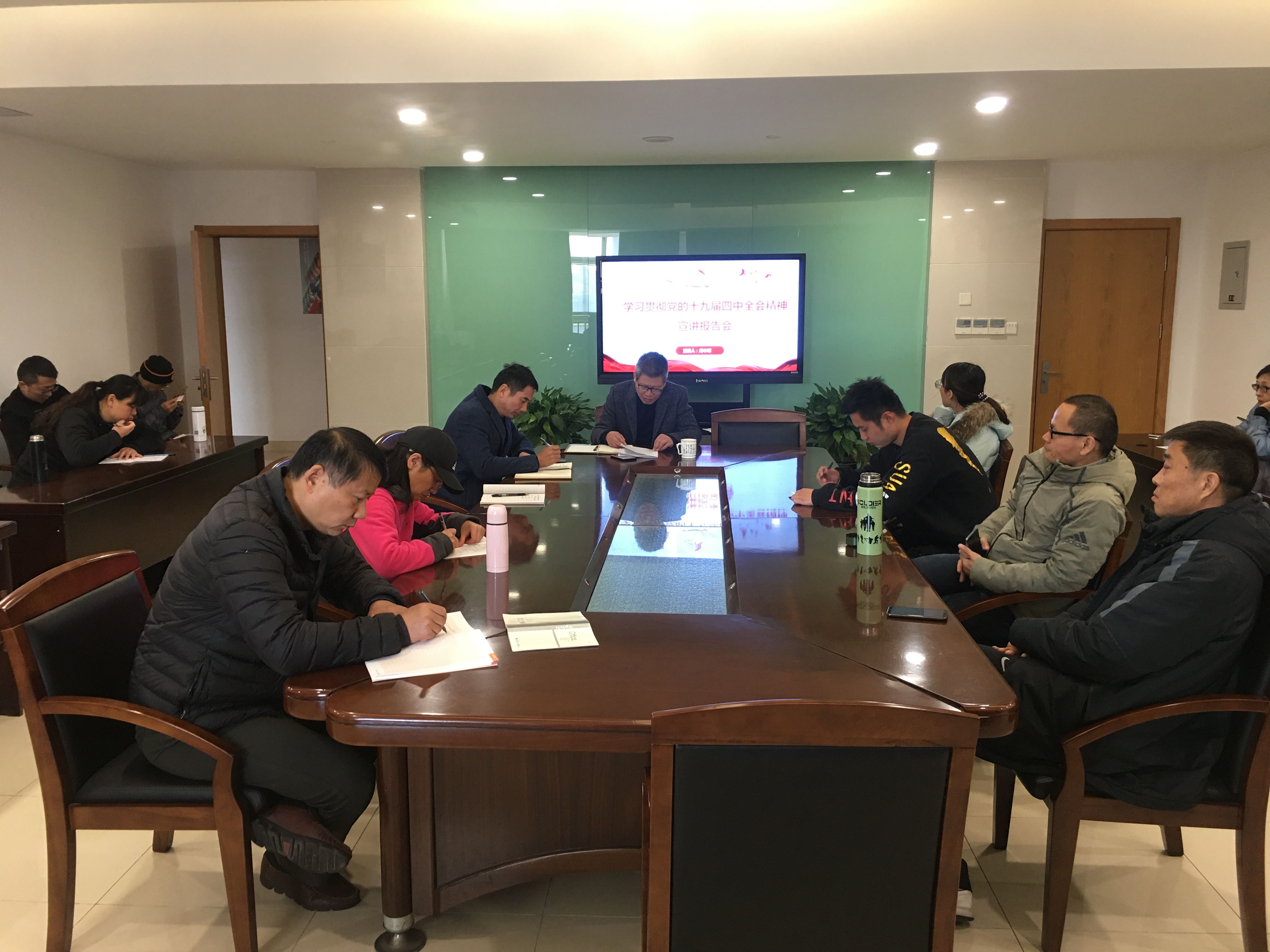 12月4日上午,体育教学部召开学习贯彻十九届四中全会精神宣讲报告会。党总支书记周中军作主题报告,全体教职工参加。