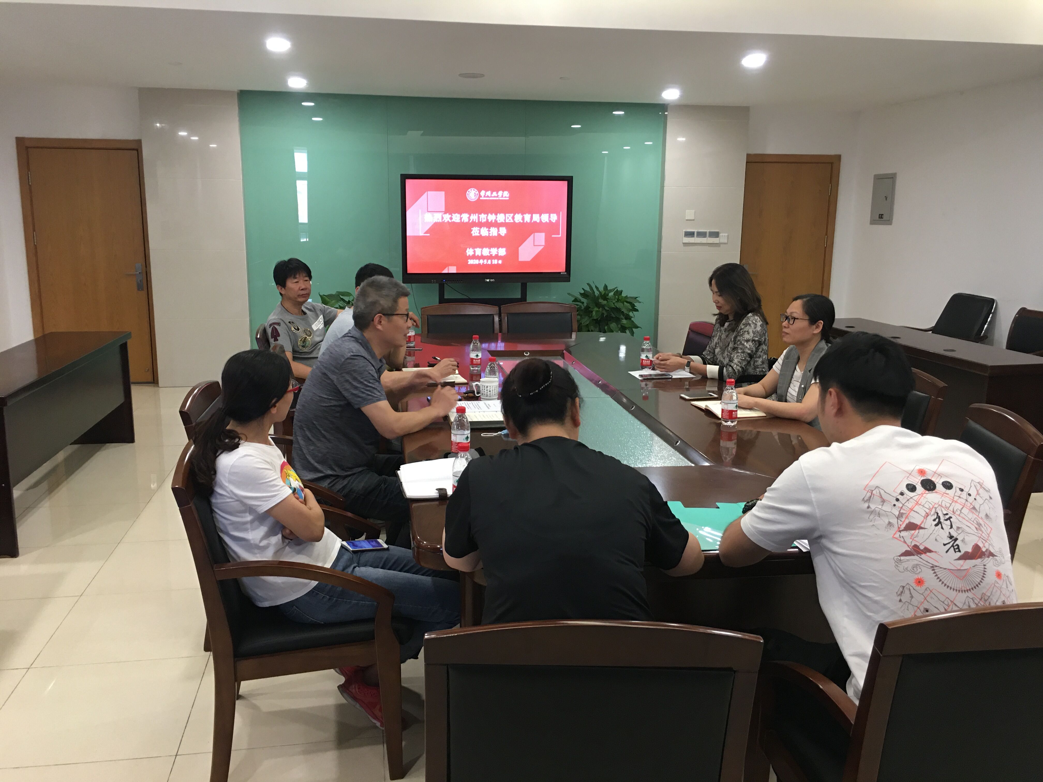 5月18日下午,常州市钟楼区教育局副局长陈佳、市体育教研员张逸一行到体育教学部对洽谈产学研合作,初步达成合作意向。