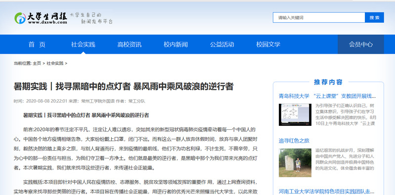 目前已经在大学生网报、爱上大学和学院微信等平台多渠道进行宣传发布,让更多人了解到岁月静好的背后,是怎样的一群人在为我们负重前行。
