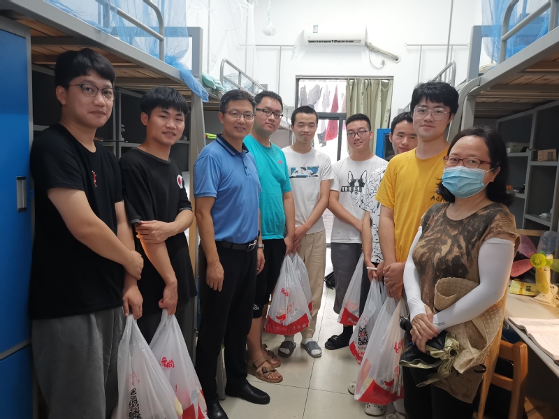 夏日炎炎,“烤”验着学生的耐力和毅力,又逢疫情防控特殊时期,人文学院共有14名同学留校备战考研,这牵动着学院领导和老师的心。8月12日下午,学院党委书记吴健、党委副书记冯平平、学工办主任周丽娟、团委书记薛姗来到辽河路校区学生宿舍,慰问暑期留校备战考研的学子们,为他们精心准备了牛奶、巧克力、坚果等慰问品,传达了学院对考研学生的关心,给他们送去清凉和鼓舞。
