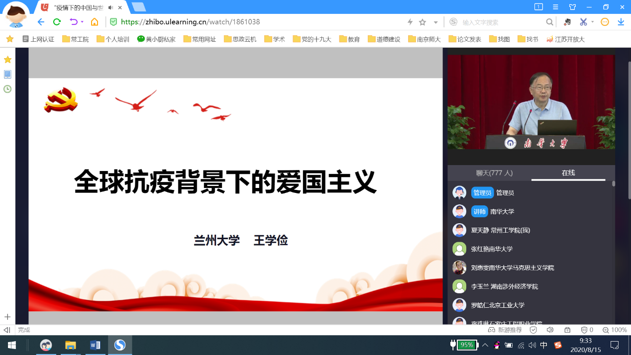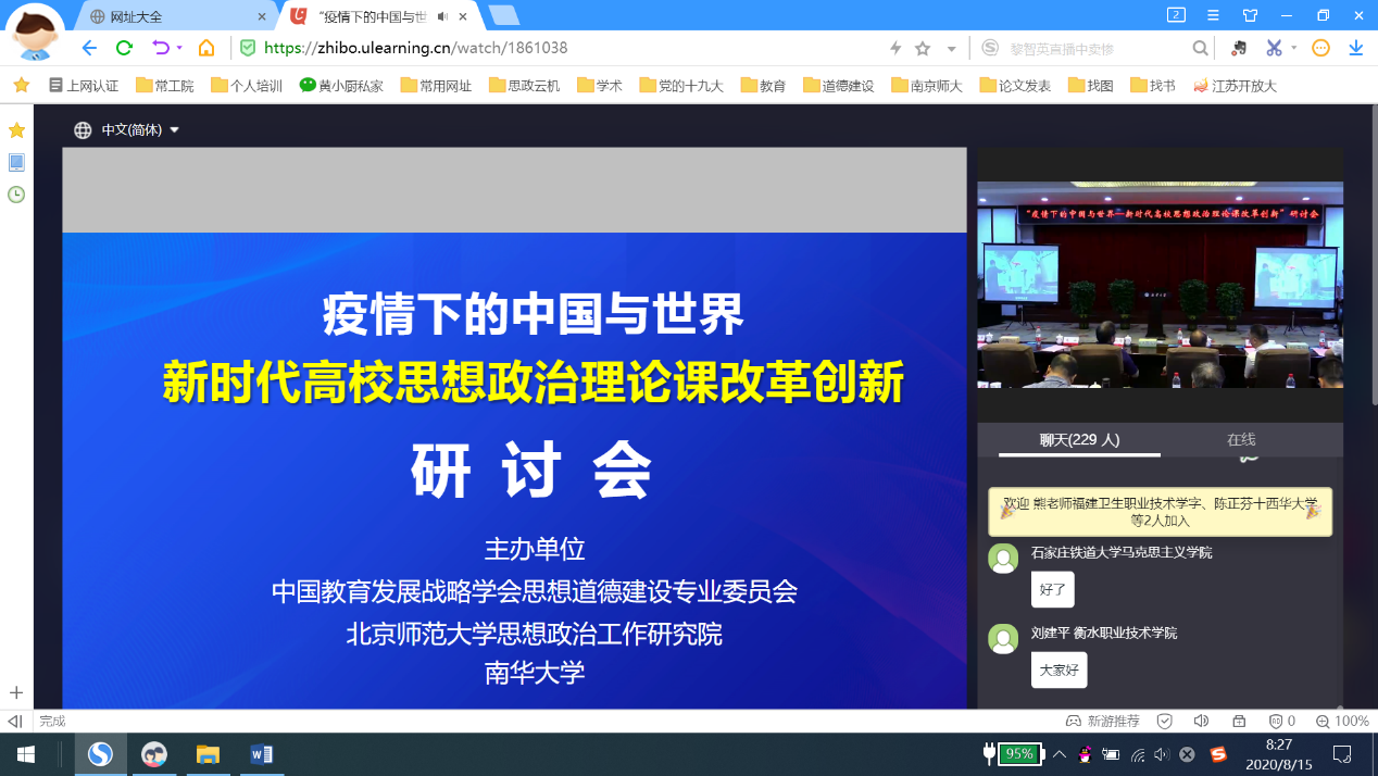 8月15日,“疫情下的中国与世界——新时代高校思想政治理论课改革创新”研讨会在南华大学召开。马克思主义学院组织骨干教师在线参会,共同研讨新时代高校思想政治理论课教学改革创新课题。