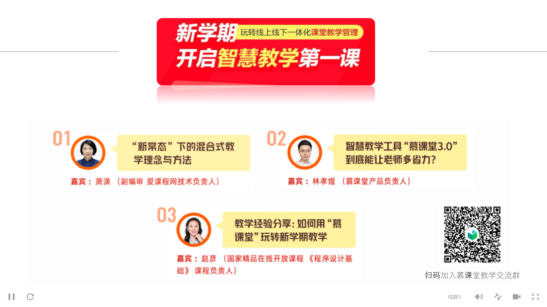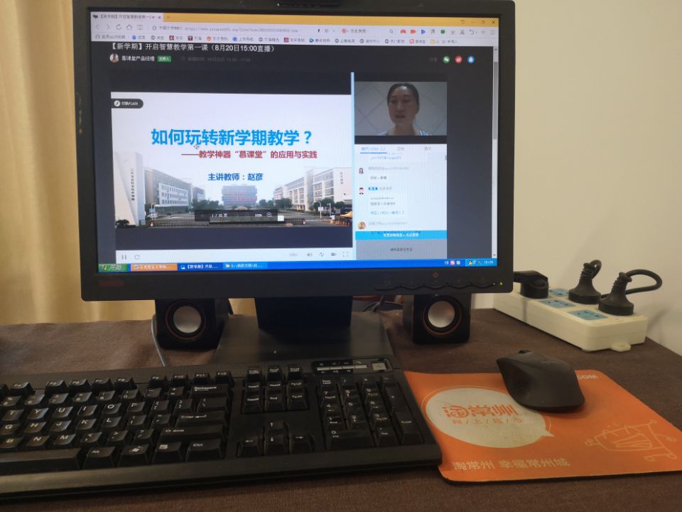 直播培训时,老师们先后收看了萧潇主讲的“新常态”下混合式教学理念与方法、林孝煜主讲的新常态下智慧教学工具:慕课堂3.0——用简单的方式让每个课堂更精彩、国家精品在线开放课程《程序设计基础》课程负责人赵彦的教学经验分享:如何玩转新学期教学?——教学神器 “慕课堂”的应用与实践等三节直播课,历时两个小时。
