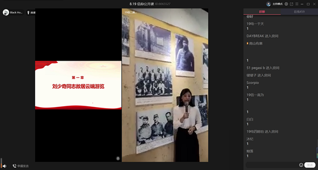8月19日上午,电气信息工程学院举办以“共溯红色历史,追忆奋斗往昔”为主题的线上信仰公开课,进一步继承和弘扬光荣的革命优良传统。参加线上直播的主要有院党委副书记高静,团委书记李欢,辅导员刘静,以及18、19、20级学生代表共400余人。