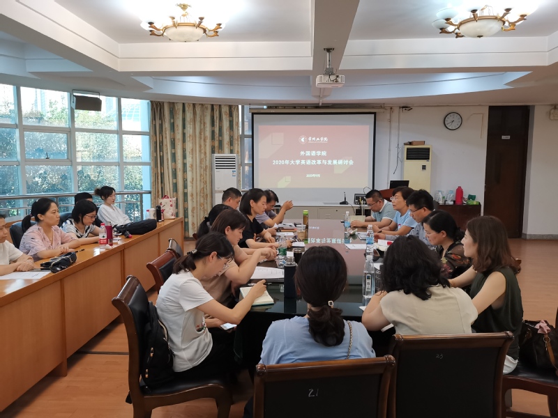 9月5日下午,外国语学院召开2020年外国语学院大学英语改革与发展研讨会,总结过去五年来大学英语改革和发展工作中的成绩与不足,学习领会大学英语教学工作建设新精神,谋划设计未来五年的工作和目标。党委书记刘一鸣、院长李静、大外部全体教师参加了会议。副院长朱江主持研讨会。