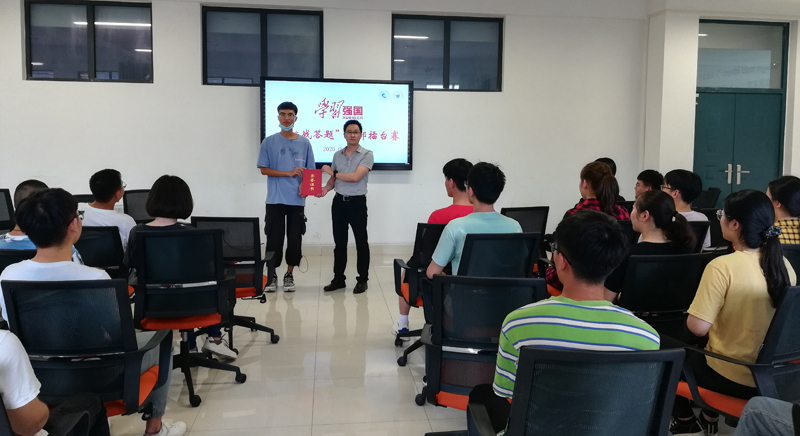 本次主题党日活动以“学习强国”为平台,由各党支部选派党员代表支部进行挑战答题擂台赛。经过3轮激烈的角逐,最终来自学生第二党支部的葛赛获得挑战答题的冠军,来自学生第一党支部的卜祥洲获得亚军。