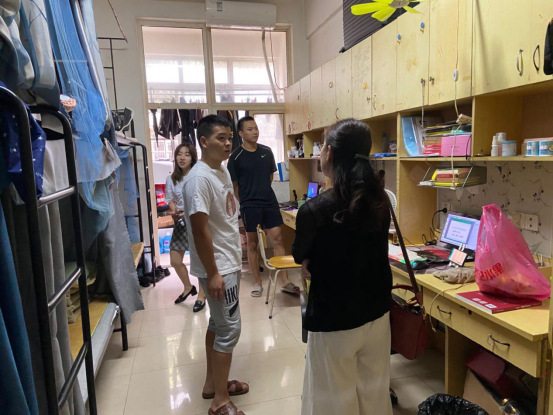 八月未见,甚至想念!偌大的常工校园因为同学们的归来,湖光树影都“活”了起来。开学第一周,19环艺一班特聘班导师人事处副处长周琳来到巫山路校区,走访学生宿舍,及时了解同学们返校后的生活适应情况,给予学生关怀。