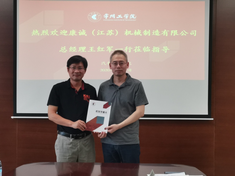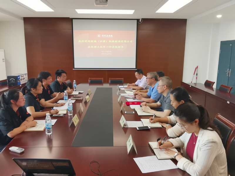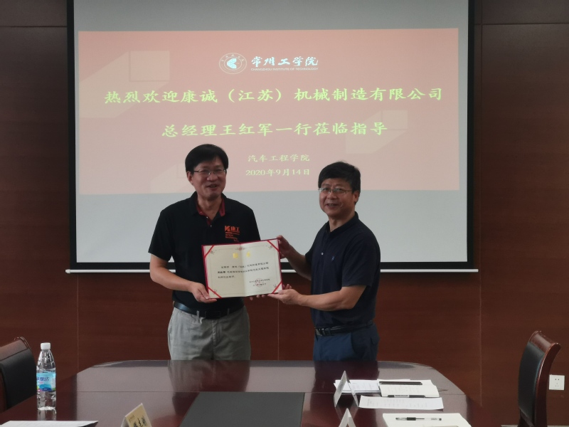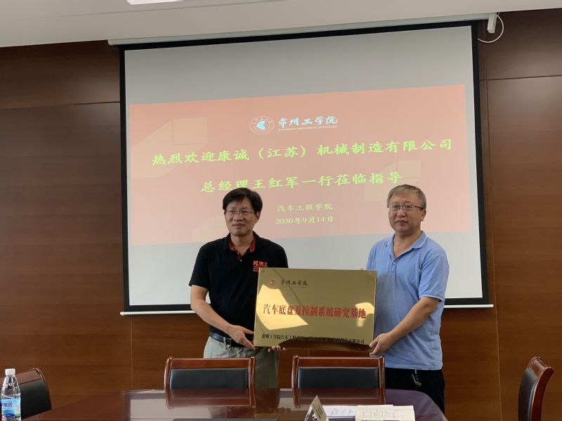 9月14日下午,汽车工程学院与康诚(江苏)机械制造有限公司在天权楼C408成功举行了校企合作洽谈会,并进行了汽车底盘及控制系统研究基地挂牌仪式。康诚(江苏)机械制造有限公司总经理王红军、副总经理陈炎访、缪志刚及人事部门王欣一来院商谈校企合作事宜,学校校友办主任王文、学院党总支书记兼院长记刘天军、副院长房汝建、副书记苏频,以及专业系主任参加了本次活动。