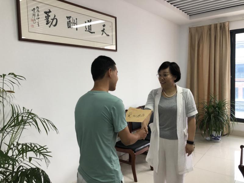 在捐赠会议上,李晓芳郑重地将师生的爱心壹万玖仟元款项交到寇奇手上,并鼓励他好好学习,对生活充满希望。通过本次自发的爱心捐款活动,我们看到了全院师生的暖暖情谊和手足之情,相信在大家的爱心帮助下,寇奇同学一定能够早日走出生活的困窘,重拾希望,砥砺前行。