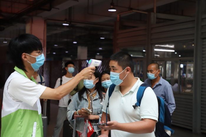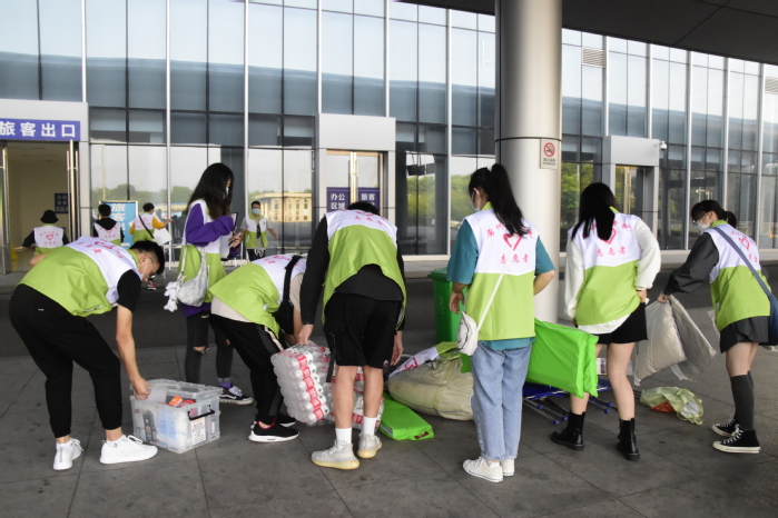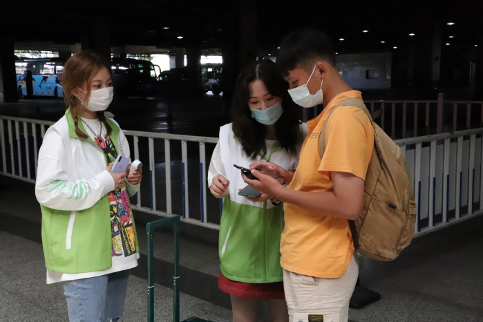 在疫情防控常态化背景下,校团委严格落实学校疫情防控要求,为每个接新站点配备了充足的防疫物资,供新生、家长和志愿者们使用。志愿者要求全程佩戴口罩,进行新生及家长的体温检测、健康码检查、引导讲解等服务工作。虽然厚厚的口罩遮住了志愿者们可爱的脸庞,却丝毫挡不住他们的真诚与热情。在常州总站,一位新生家长给志愿者们赠送了小零食,既是对迎新工作的肯定,也是对志愿者们的鼓励。