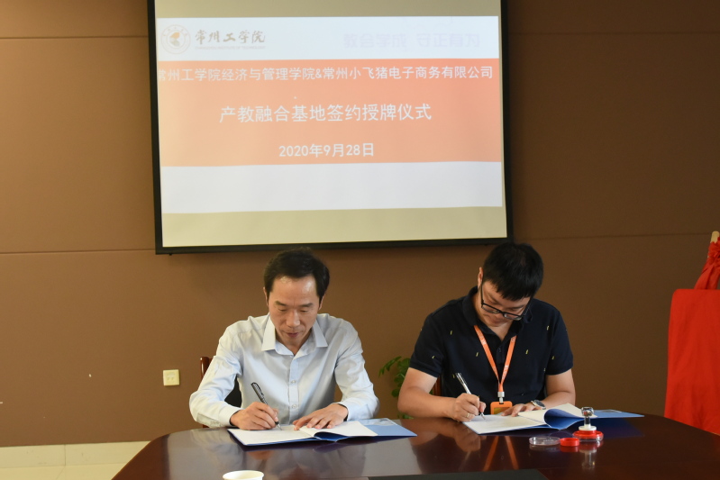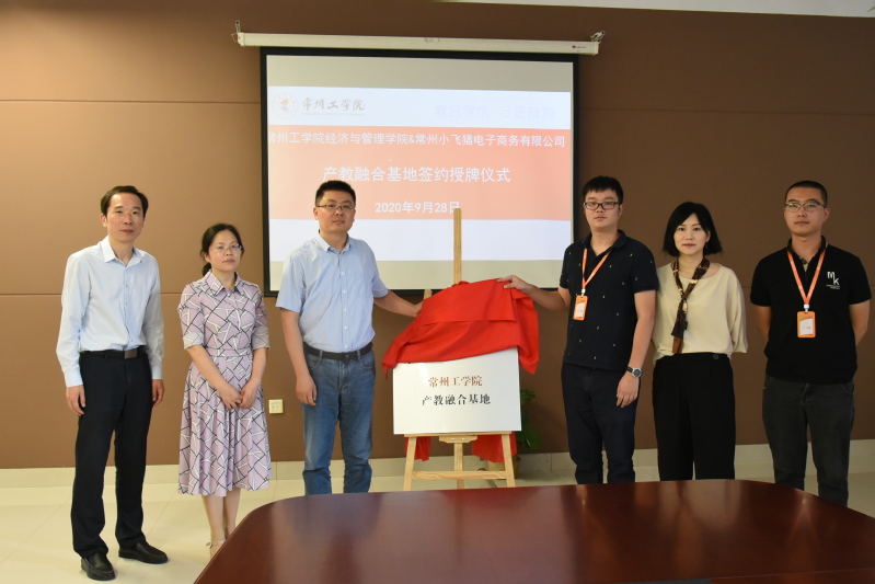 9月28日上午,经济与管理学院与常州小飞猪电子商务有限公司举行产教融合基地签约授牌仪式。