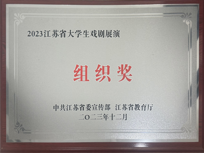 12月18日,2023江苏省大学生戏剧展演颁奖仪式在江苏大剧院举行。我校团委非遗工作室戏曲坊报送的戏曲作品《穆桂英挂帅·捧印》获戏曲类“传承奖”,我校获评“组织奖”。