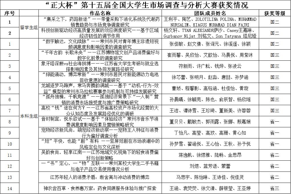 第十五届“正大杯”全国大学生市场调查与分析大赛中,我校14支本科生队伍、2支留学生队伍经校内选拔脱颖而出,代表学校征战省赛、国赛,尽显专业功底与创新能力。