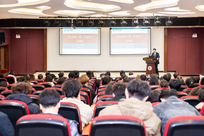 活动伊始,国际交流合作处处长金中坤发言,强调出国(境)交流学习的重要性,并介绍了学校“地方性、应用型、国际化”的办学定位。随后,相关学院领导为获得2025年度境外留学交流奖学金的同学颁发荣誉证书。学生出国(境)交流学习宣讲环节,金中坤详细介绍了学校学生海外学习交流的各类项目及学分认定、奖学金方面的支持政策。优秀学生代表李鹏远、田笑分享了他们赴土耳其和日本交流学习的经历和经验。