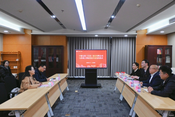 11月28日,土木建筑工程学院与中建七局(江苏)建设有限公司举行党建共建签约仪式,深化校企合作与产学研融合。学院党委书记朱建群、副书记曹其,中建七局(江苏)建设有限公司工会主席陈郁枫、副总经理张文光及双方党员代表参加活动。