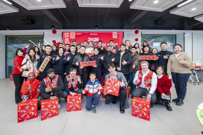 2月11日下午,赫特福德学院/国际交流学院在产教融合大楼C座二楼举办“2026年中外师生迎新春联欢会”。常州高新技术产业开发区分局出入境管理大队、常州出入境边防检查站相关领导及民警代表,学院及国际交流合作处负责人、中外教师代表与30余名留校留学生欢聚一堂,共迎农历丙午马年新春。