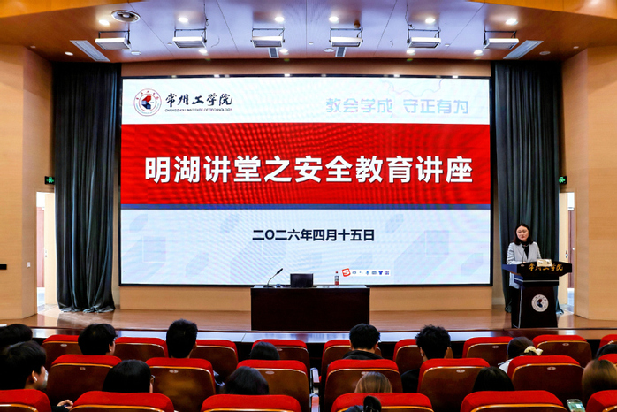 4月15日,由校党委学生工作部(处)主办、化工与材料学院承办的明湖讲堂2026年第一讲开讲。活动邀请常州市国家安全局警官主讲,15个二级学院的170余名学子现场聆听学习。
