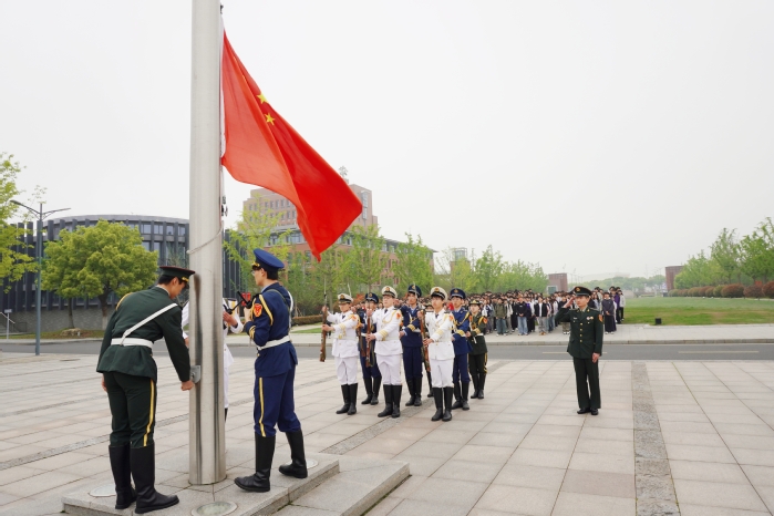 4月20日,计算机信息工程学院在明湖畔举行升国旗仪式。学院党委书记朱建群出席并作国旗下讲话,全体辅导员、学生党员及2025级全体学生参加活动。