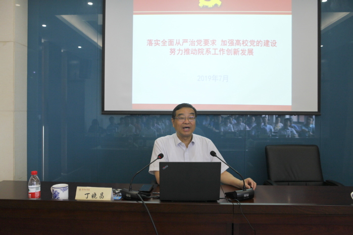 江苏省高等教育学会会长丁晓昌作《落实全面从严治党要求加强高校党的建设努力推动院系工作创新发展》专题报告。报告中,丁晓昌条分缕析、全面系统回顾了高校党建工作的发展历程,分析了高校党建工作面临的新形势、新挑战、新要求、新任务。结合江苏高校党建工作的基本经验、主要做法和实践成果,就如何切实加强党对高校的全面领导,他围绕坚持正确办学方向,确保按党的要求办学治校;建设坚强阵地,确保党的领导和党的组织有效覆盖;打造高质量专业化队伍,确保党建工作任务落细落实等三个方面,进行详细阐释。他还就新时代江苏高校党支部建设“提质增效”三年行动计划进行了解读;围绕深化落实高校院(系)党政共同负责制工作,他从正确把握落实好院(系)党政共同负责制的关键点、认真理解实施院(系)党政共同负责制的主要依据、深刻领会院(系)党政共同负责制的本质内涵等三个方面问题,与大家分享了认识和思考。