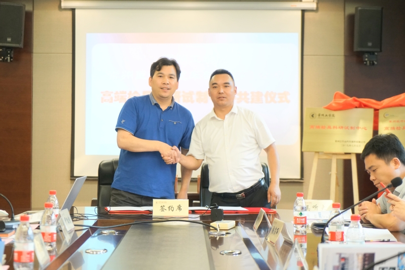 航空与机械工程学院/飞行学院院长郭魂代表学校与对方签署了共建协议,并向企业授予了“高端检具科研试制中心”的牌匾。