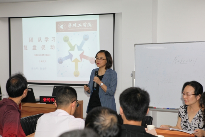 WFA国际促动协会“专家级促动师”、美国“6Ds将培训转化为商业结果”认证转化师张玲玲作《复盘:理论到实践的转化》的辅导报告,将培训学员分为四组进行讨论交流,采取了团体心理学、行动学习、第五项修炼等理论、知识和促动技术,通过“回忆、感想、启发、行动”等四个环节,引导学员对所学内容加深理解、学以致用。