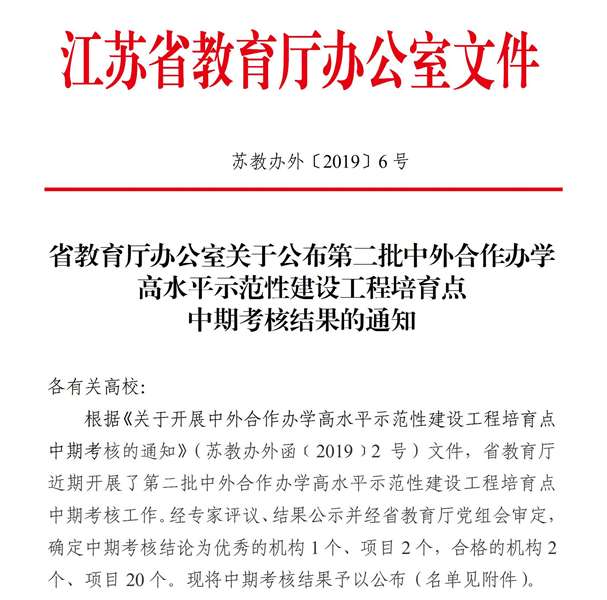 近日,省教育厅办公室公布了第二批中外合作办学高水平示范性建设工程培育点中期考核结果,我校师范学院学前教育专业顺利通过考核并获得20万元奖补经费。