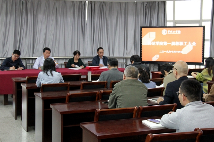 10月16日,师范学院召开第一届教职工大会。院党委书记肖华主持会议。