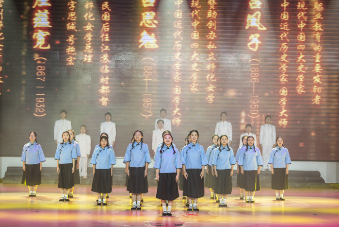 晚会在音诗画《粹化女校》中拉开帷幕。大学生艺术团舞蹈团带来的歌舞(舞蹈)《梦立方》《脊梁》《站在长征的起点》《碇步桥水清悠悠》《誓言铮铮》《我和我的祖国》,歌声悦耳、舞姿曼妙,一次次赢得现场观众热烈的掌声;大学生艺术团器乐团带来的民族器乐表演《站在高岗上》,淋漓尽致彰显了民族文化的魅力;大学生艺术团曲艺团带来的舞台剧《青果巷少年》,带领新生身临“江南名士第一巷”之境,与瞿秋白、张太雷的少年情怀产生深刻共鸣;大学生艺术团合唱团带来的合唱《在希望的田野上》,唱出了青年大学生的青春梦想和对祖国的无限深情;阳湖剧社带来的小品《远离校园贷,青春不负债》,让大家在笑中思考怎样珍爱自身、珍爱青春;Elovers’街舞社街舞《最好的舞台》和留学生舞蹈《乌兹别克波利卡》的精彩表演,生动展示了青年的活力创意和浓郁的异域风情,燃爆现场,将晚会推上一个新的高潮。银话筒社和校学生会声情并茂的朗诵《榜样的力量》,进一步激励大家从被誉为“夜空中最亮的星”的榜样身上汲取前行力量,用激情和理想追梦,用奋斗和奉献圆梦,从而凝聚起推动“中国号”巨轮破浪前行的磅礴力量。