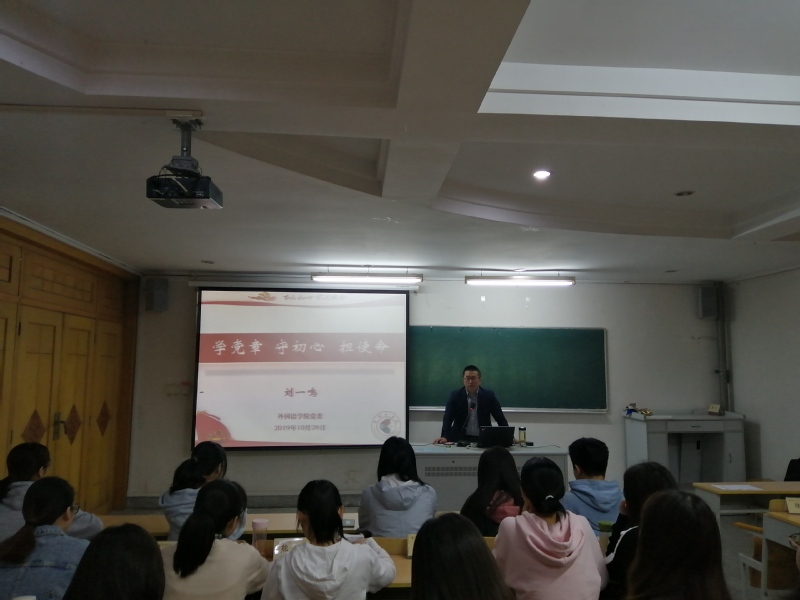 10月26日,外国语学院党委分党校在巫山路校区1#105教室顺利开班。院党委书记刘一鸣、党委副书记俞贤辉和学工办主任陆婷为50余名入党积极分子进行专题培训。