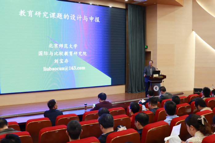 11月1日下午,我校“名师大讲堂”第31讲开讲。此次大讲堂特邀国务院政府特殊津贴专家、教育部人文社会科学重点研究基地北京师范大学国际与比较教育研究院院长、教育部国别和区域研究培育基地北京师范大学国际教育研究中心主任(兼任亚洲比较教育学会会长、中国教育学会比较教育分会理事长、《比较教育研究》副主编)、第四届全国教育科学研究优秀成果一等奖获得者刘宝存教授,作《教育研究课题的设计与申报》的学术报告。教师教学发展中心主任吴邦江主持报告会。