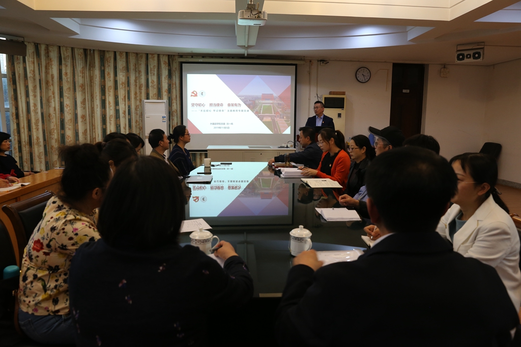 根据校党委“不忘初心、牢记使命”主题教育部署安排,11月5日,外国语学院党委书记刘一鸣以《坚守初心、担当使命、奋发有为》为题,上了一堂生动而深刻的主题教育专题党课。省委主题教育第十一巡回指导组副组长王宗荣,校党委常委、党委组织部部长章瑜到场指导。该院全体师生党员、部分入党积极分子聆听党课。