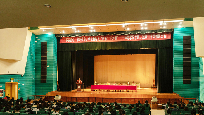 “星辰下,明湖旁,年轻人读书的好地方……”11月6日下午,校歌《放飞梦想》熟悉的旋律再次唱响于巫山路校区音乐厅,为师范学院“不忘初心、牢记使命,争做新时代‘四有’好老师”——学风、班风、舍风推进大会拉开序幕。副校长张兵出席会议并作讲话。相关职能部门负责人参加会议。