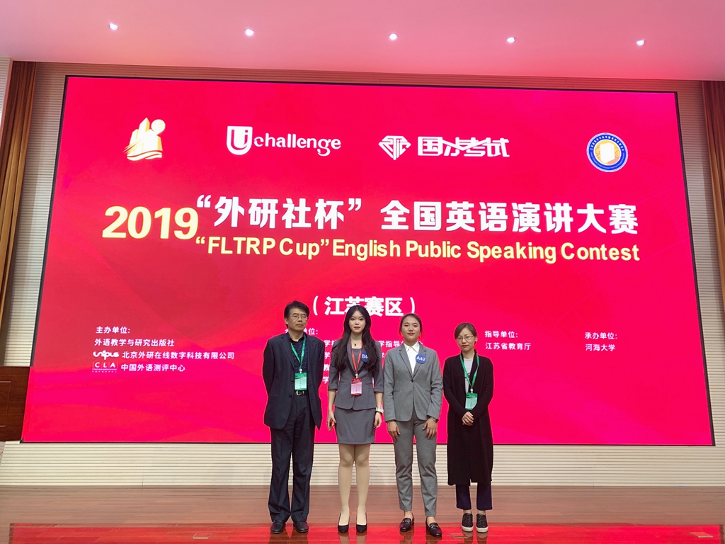 11月8日-10日,由教育部高等学校大学外语教学指导委员会等单位主办的2019“外研社杯”全国英语演讲大赛江苏赛区决赛落幕。我校外国语学院朱若丹(指导教师:田国民)获一等奖,王逸(指导教师:时常珺)获三等奖。