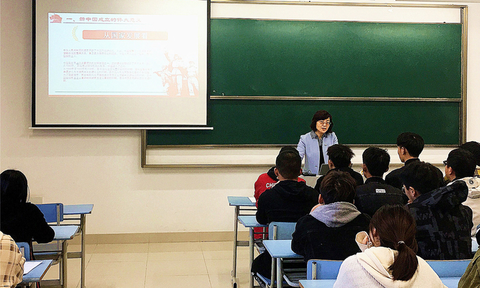 11月20日下午,副校长汪群走进经济与管理学院19物管一班、19管二班,以《辉煌70年——新中国的伟大意义》为题,给学生上了一堂别开生面的思想政治理论课。