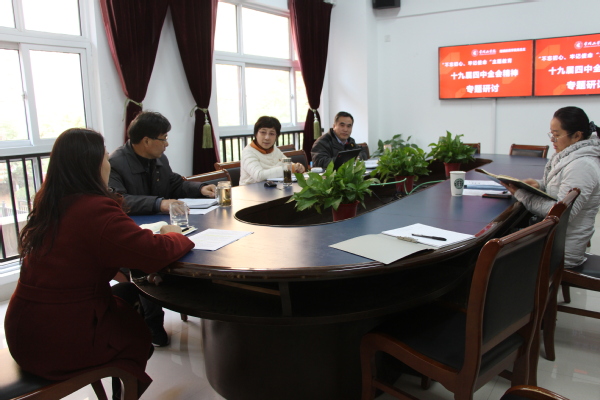12月2日下午,继续教育学院党总支开展“学习贯彻党的十九届四中全会精神”专题研讨会。院党总支支委委员参加会议,院党总支书记金心主持会议。
