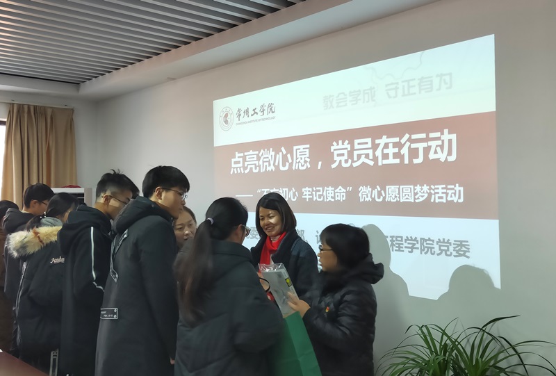 活动中,与会的教师党员将自己认领的微心愿礼物逐一送到学生手中,并送上暖心寄语。机关党委第二党支部书记罗兰英表示,微心愿圆梦活动传递了正能量,激励着学生成长成才,其切口虽小,却意义深远,体现的是困难学生的切实期盼,解的是“燃眉之急”;活动很好地践行了常工党员的初心和使命,增强了学生的幸福感和获得感。贫困学生代表表达了对学校领导和教师关爱的感恩之心和早日成才回报社会的志向。